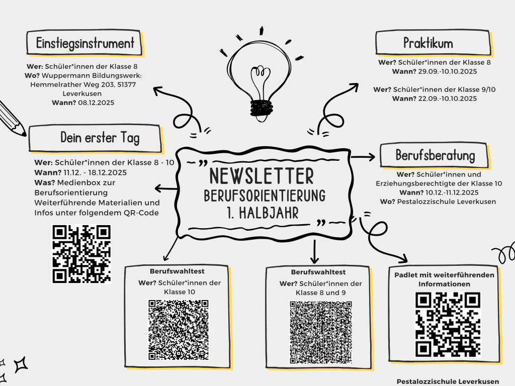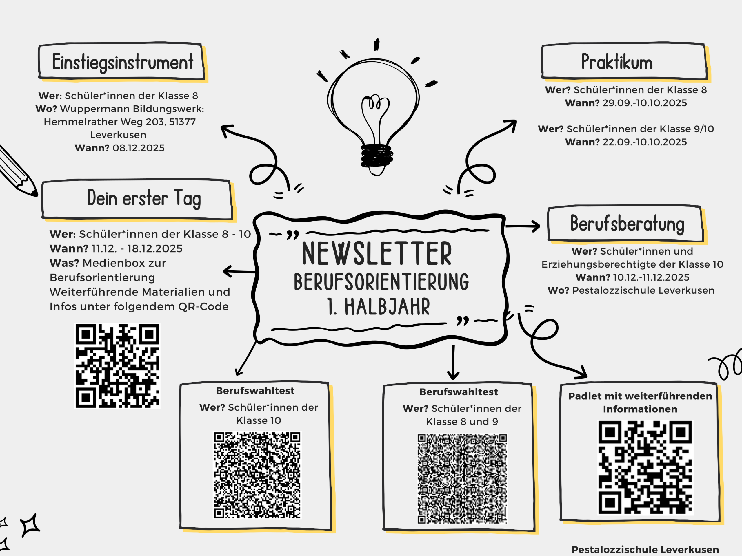 Die Berufsorientierung ist ein Schwerpunkt der Klassen 8, 9 und 10. Im Folgenden finden Sie ein Schaubild, das die Standardelemente der Berufsorientierung abbildet.